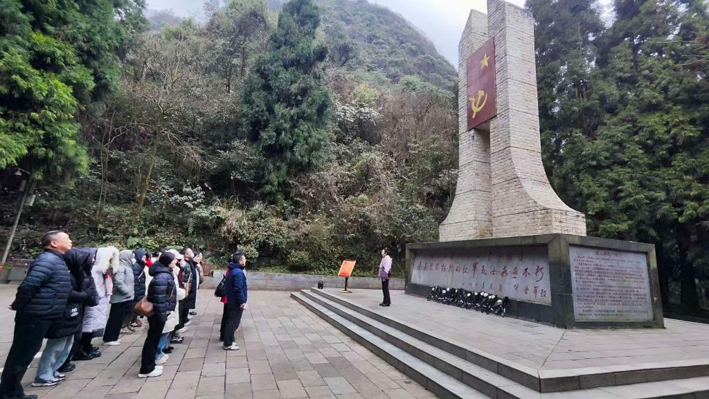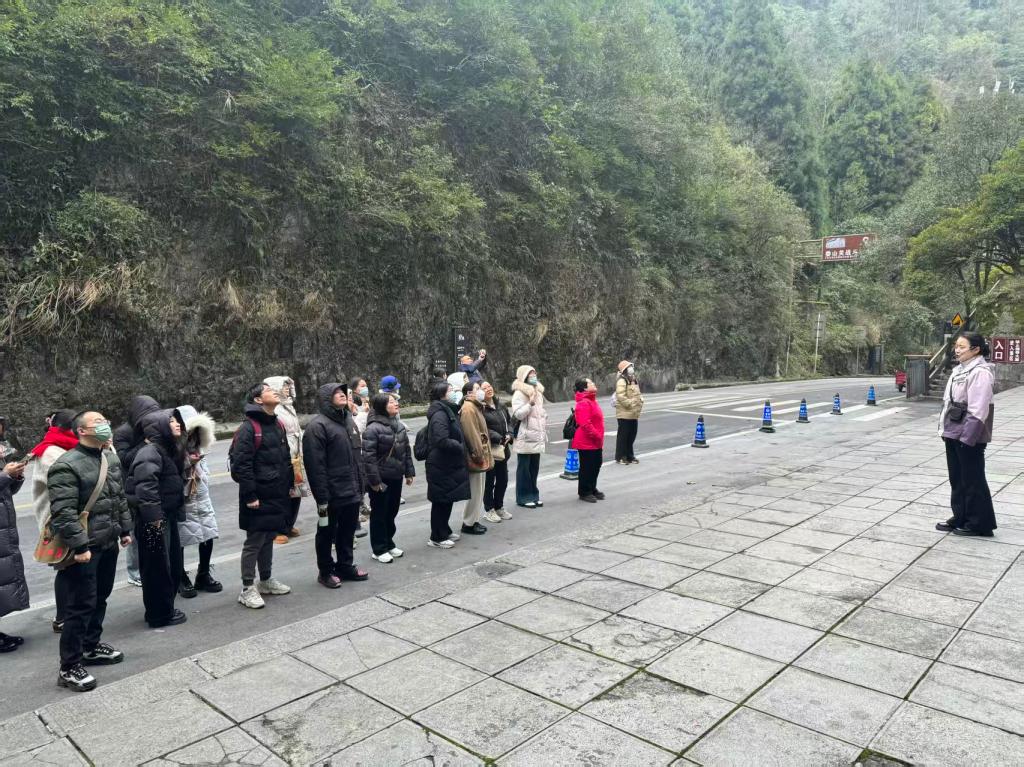 8时30分,研学团乘车前往娄山关,全体教师抵达这片曾见证中央红军长征以来首次大捷的英雄土地。在娄山关战役纪念碑前,现场教员声情并茂地讲解了娄山关战斗的历史背景与战略意义,深情讲述了独腿将军钟赤兵等英雄人物身负重伤仍坚持战斗的感人事迹。教师们仰望巍巍丰碑,仿佛听到了当年红军战士浴血奋战的呐喊声,对革命先辈不畏牺牲、英勇斗争的精神肃然起敬。